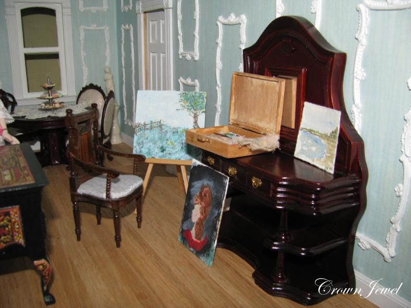 Crown Jewel Manor is the jewel in the crown of my private collection of miniatures. I no longer build or decorate dollhouses or roomboxes for public sale but I am happy to answer any questions!